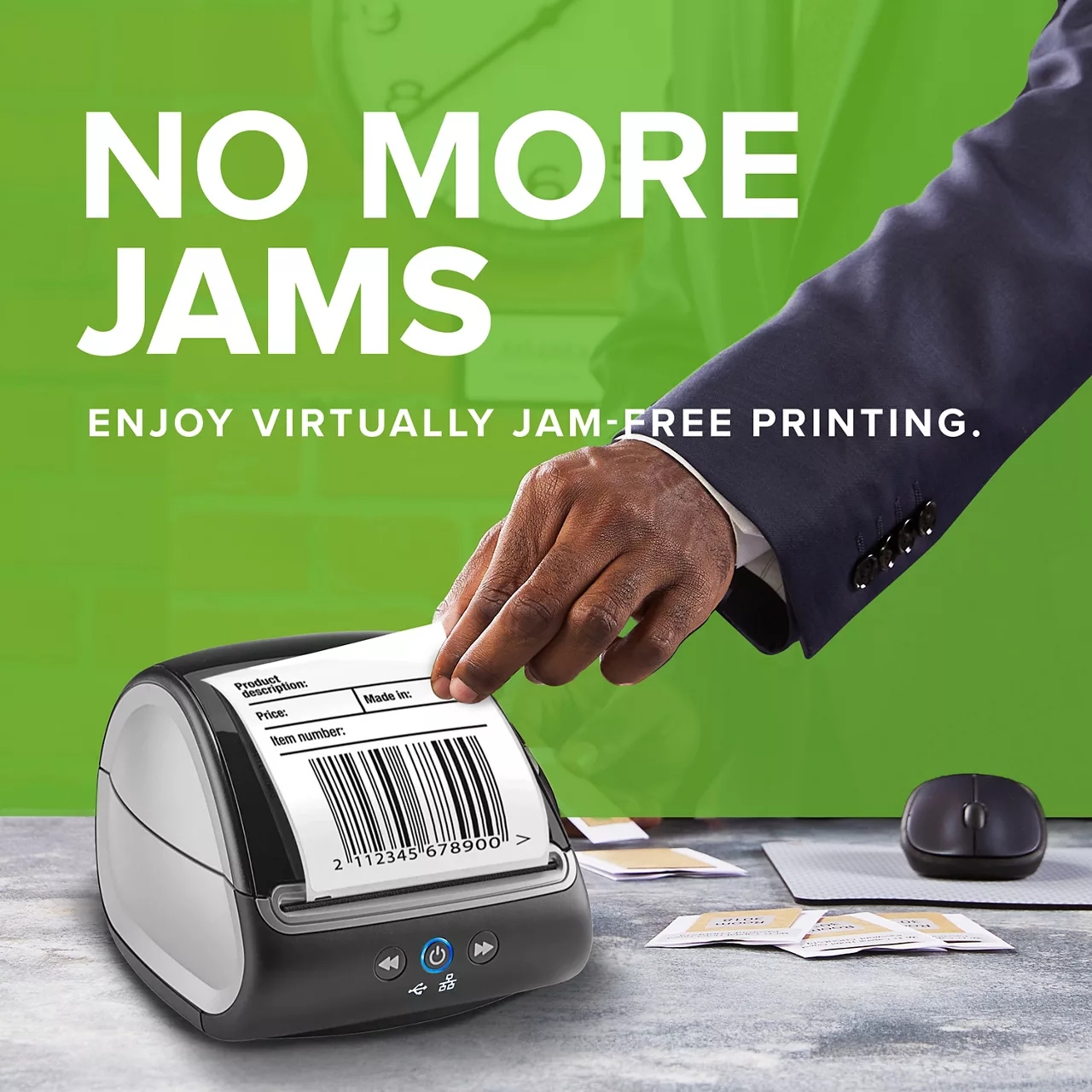 - High-resolution 300 dpi printing for clear text, barcodes, and graphics