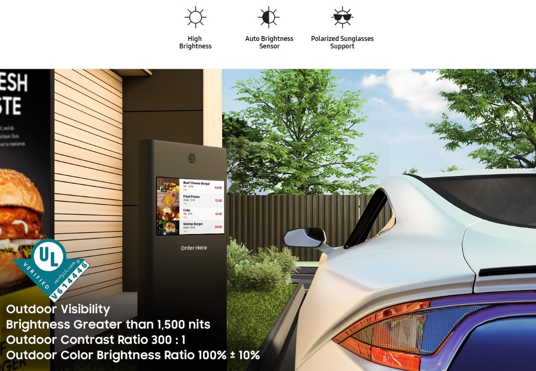 Samsung equips this outdoor display with its Tizen 6.5 smart signage platform, which includes an integrated SoC (System on Chip) to run content and applications without requiring an external media player. It supports scheduling, multimedia playback, and cloud content management tools like Samsung MagicINFO™ 10 for remote control and content orchestration.