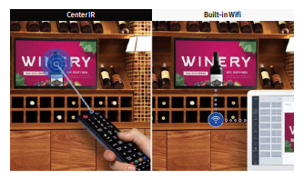 With center IR, each display receives IR signals direct to the panel, allowing easy and convenient remote control. When mounted, the display doesn’t require an IR receiver cabling extension. Built-in Wi-Fi allows wireless remote management for both content and display.