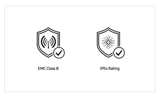 The QB24R-B  display is electromagnetic compatibility (EMC) class B compliant, meeting strict safety and reliability standards for operation. Additionally, IP5x rating ensures durable performance even in dusty environments.